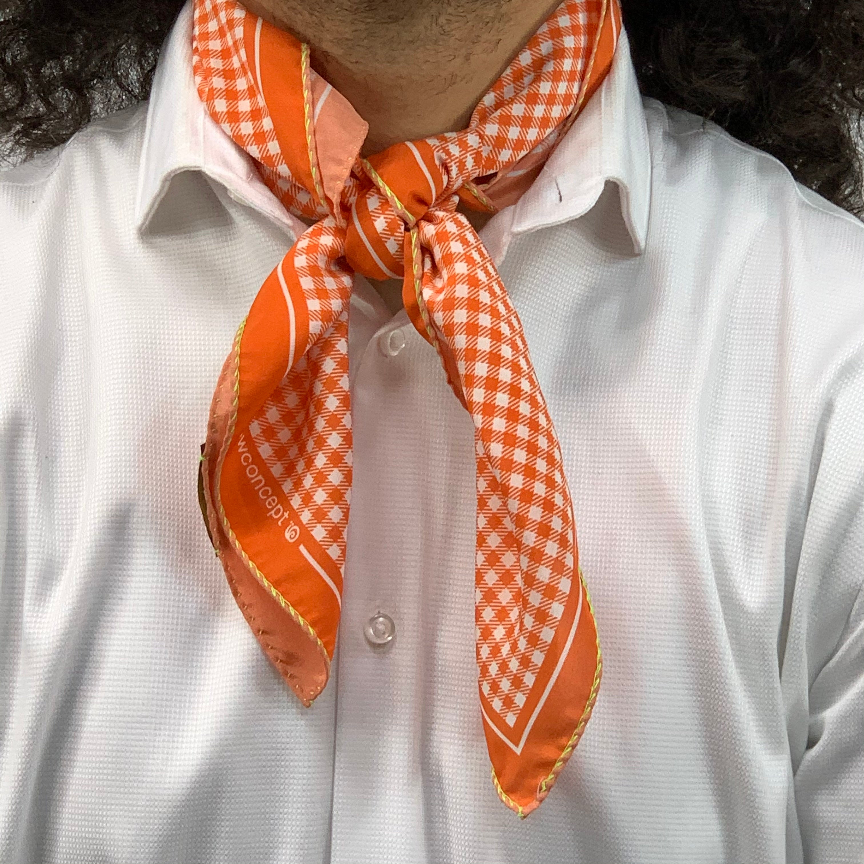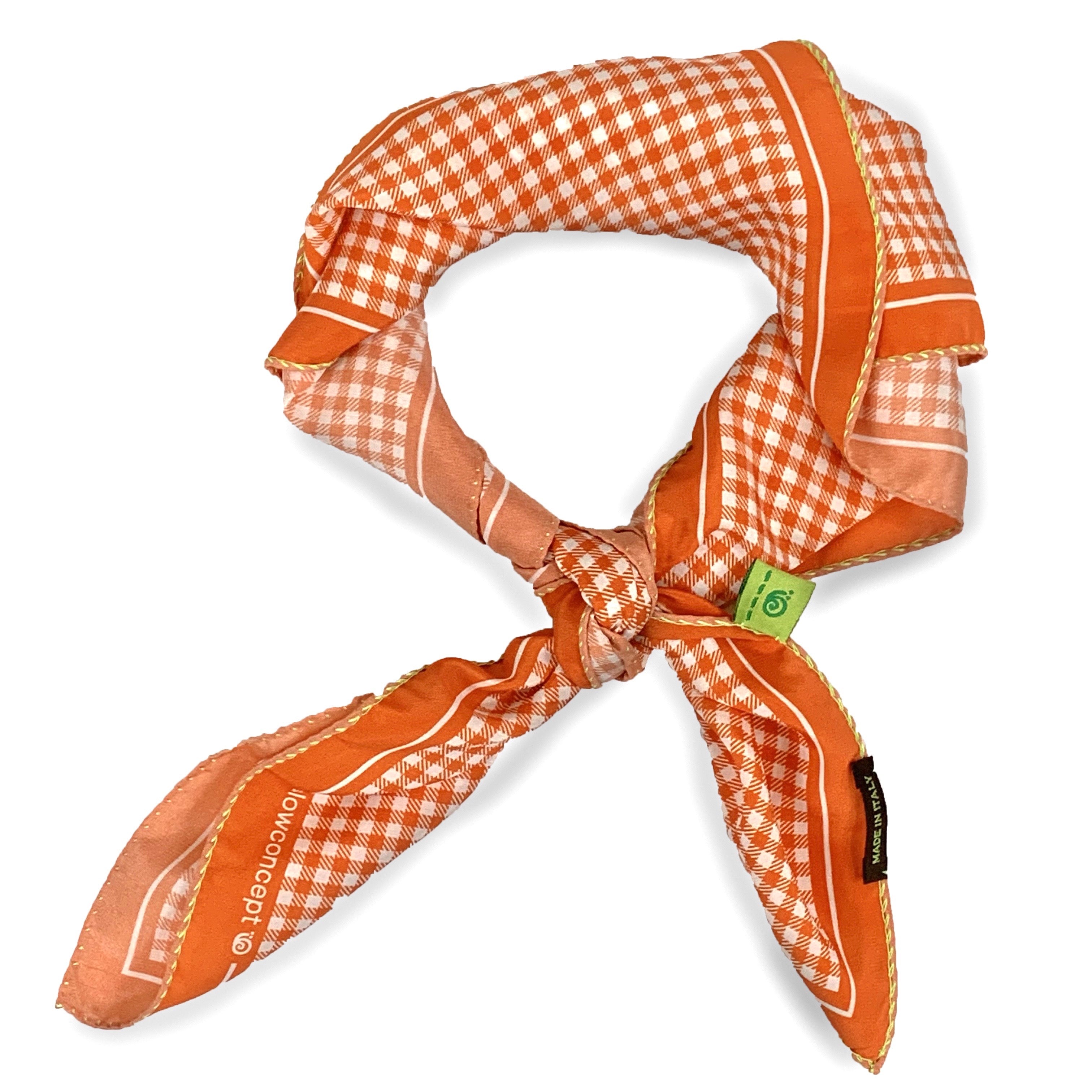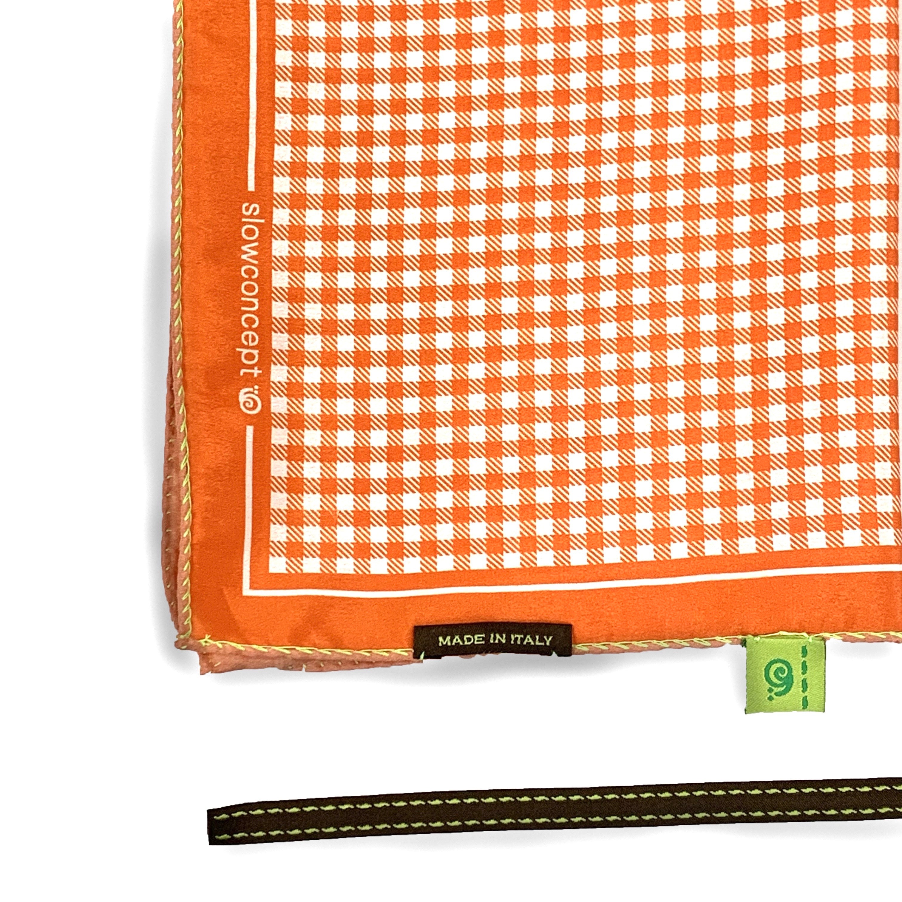 Bandana printed Made in Italy 100% silk, vichy design pack green French hem in contrast.