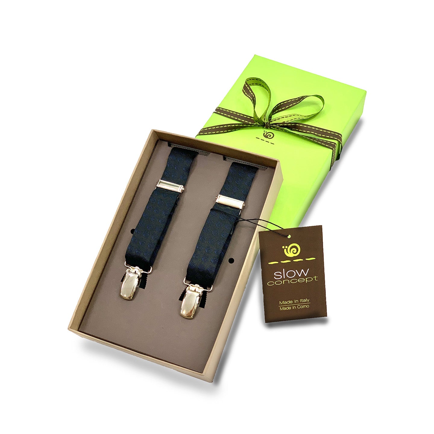 Braces in pure silk jacquard microtonal design snail. Width suspenders silk 2.5 cm.