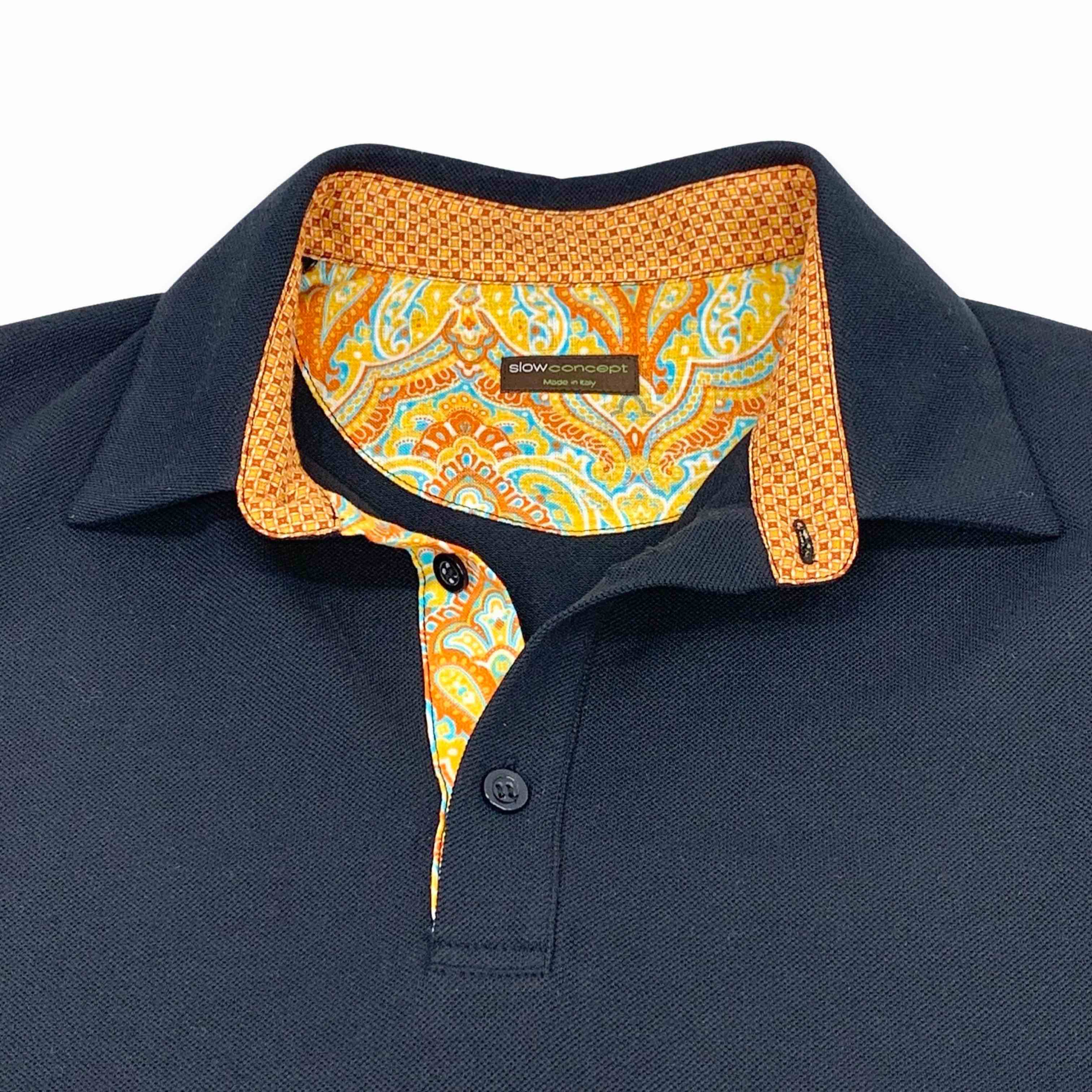 Shirt collar, three button closure with contrasting Slowconcept print.