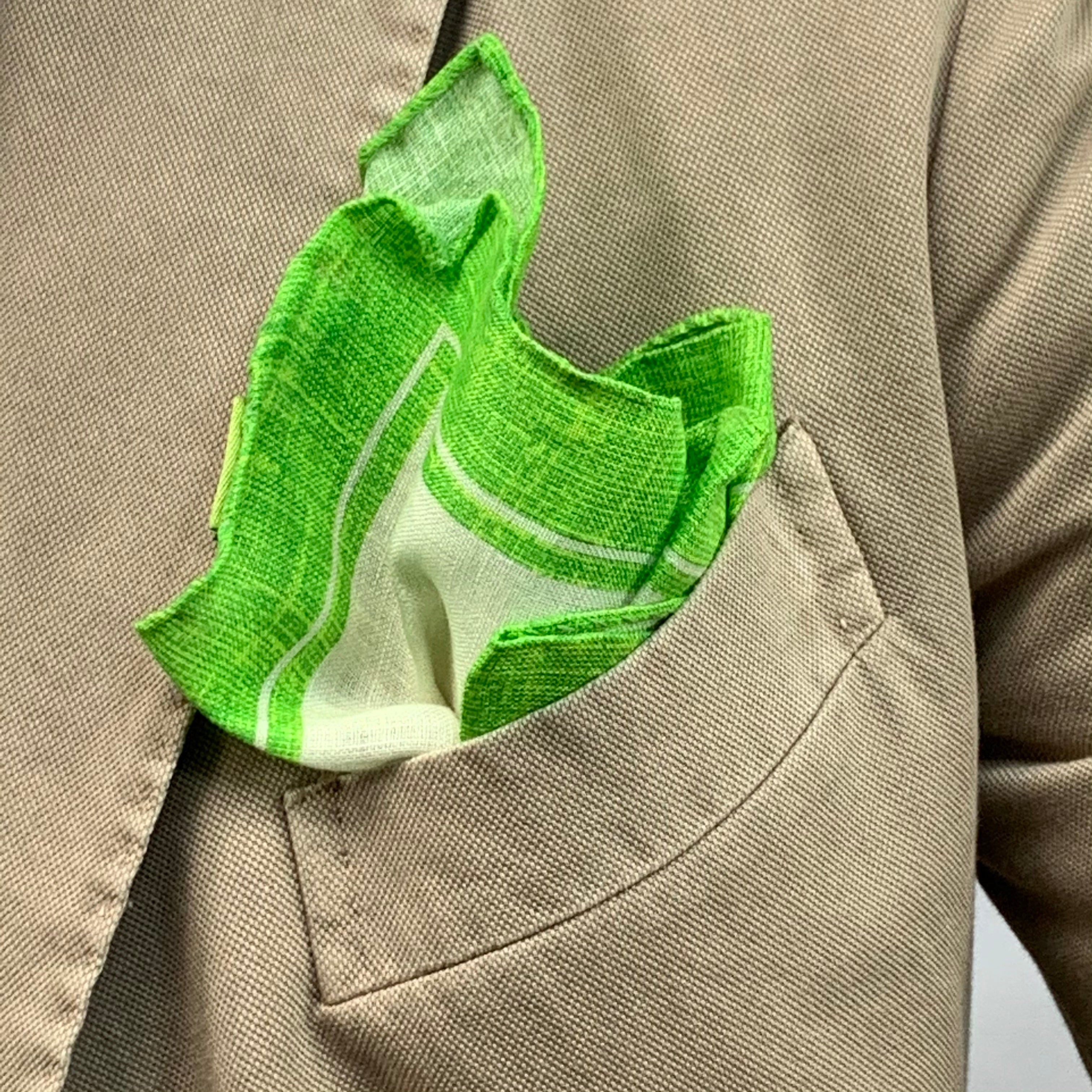 Pure Linen printed Pocket handkerchief Green Cod 133