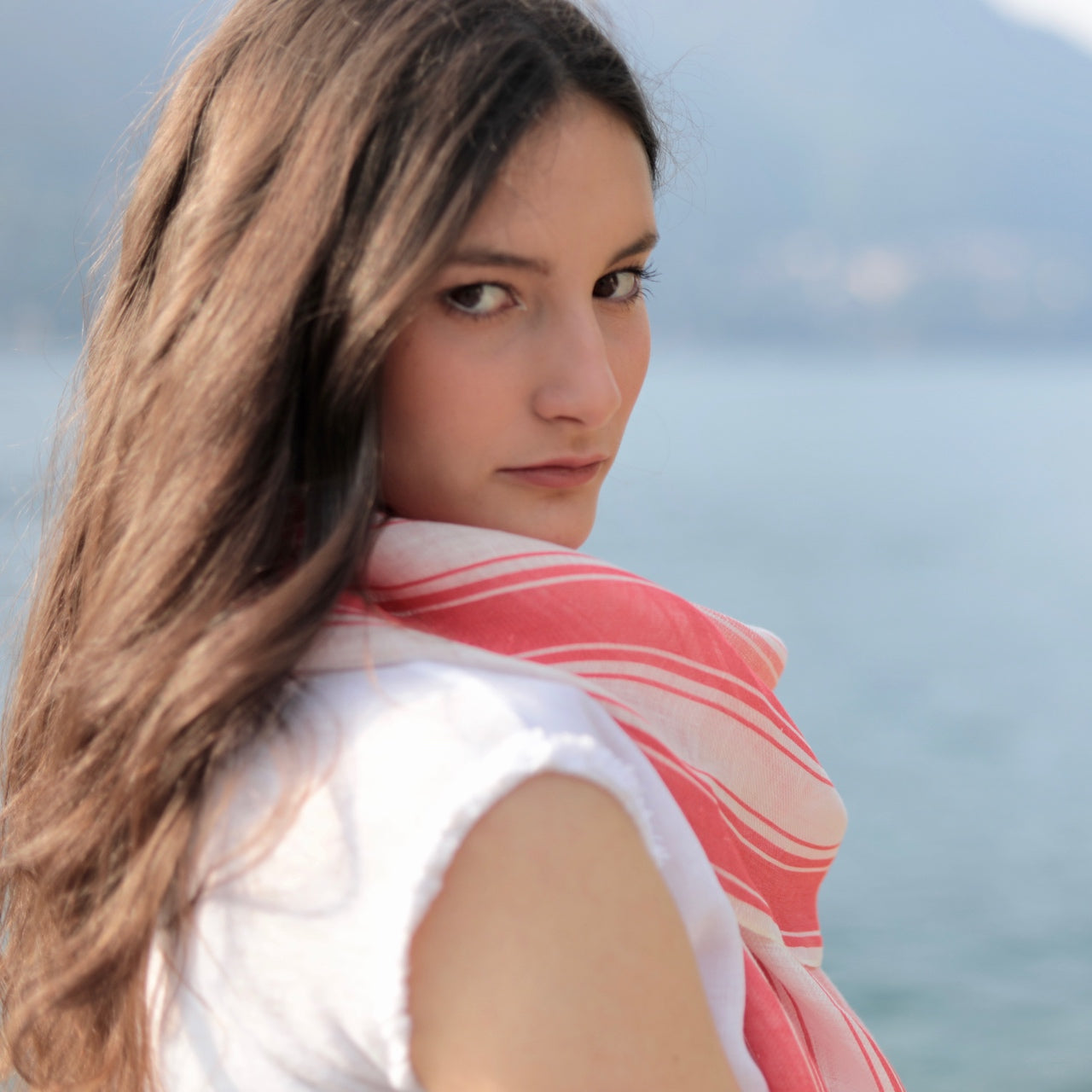 Stole printed on 100% linen fabric, made in Italy, hemmed on four sides.