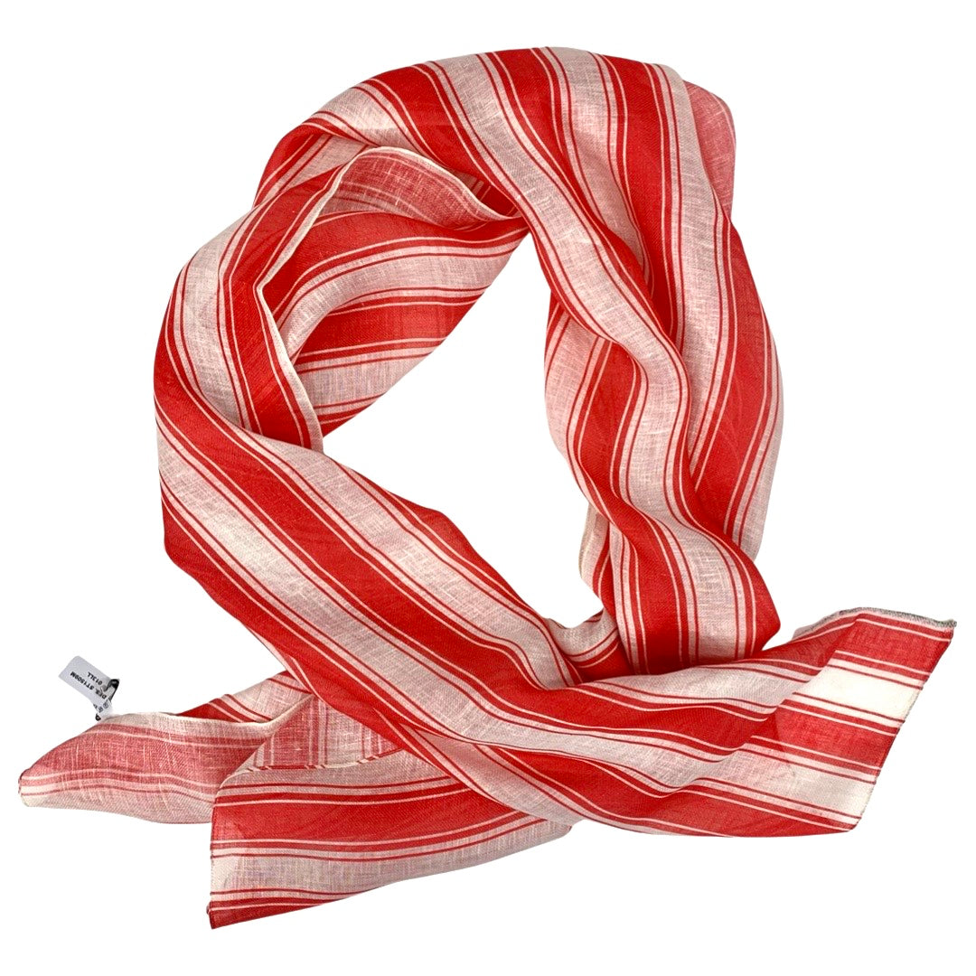 PURE LINEN STOLE PRINTED PATTERN PINK CORAL STRIPES