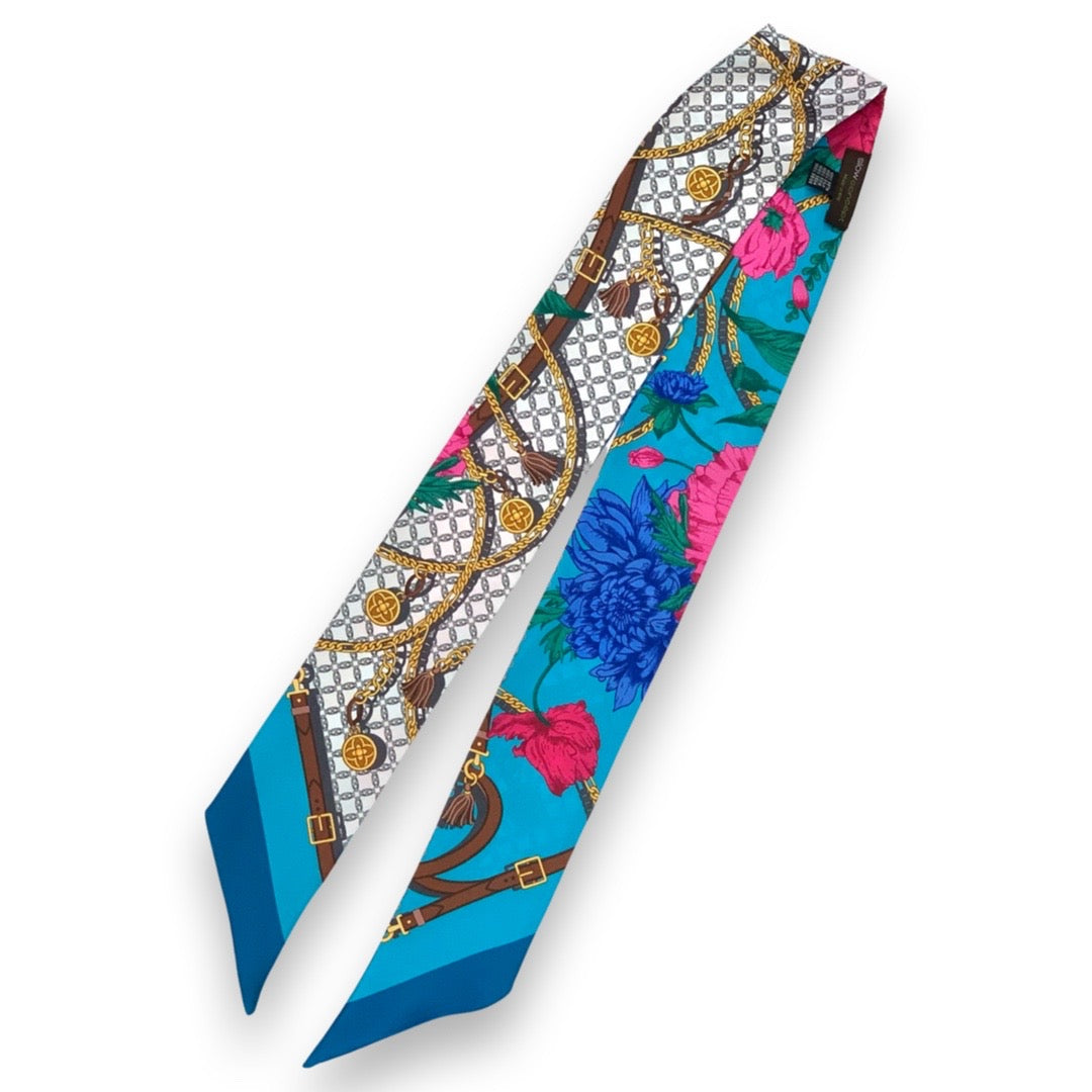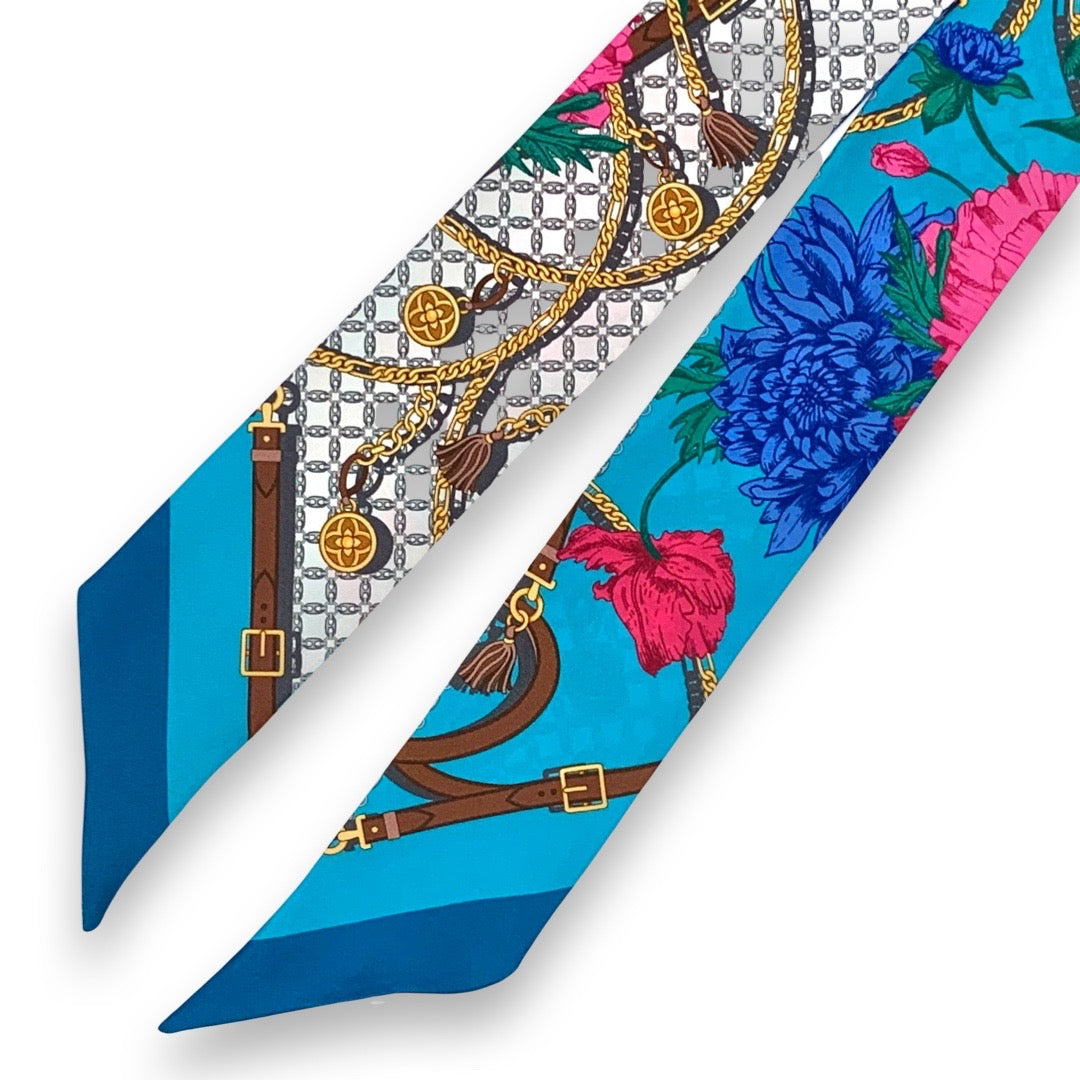 Pure Silk Bandeau with Pop Flower design and buckles colour Aqua Cod 784