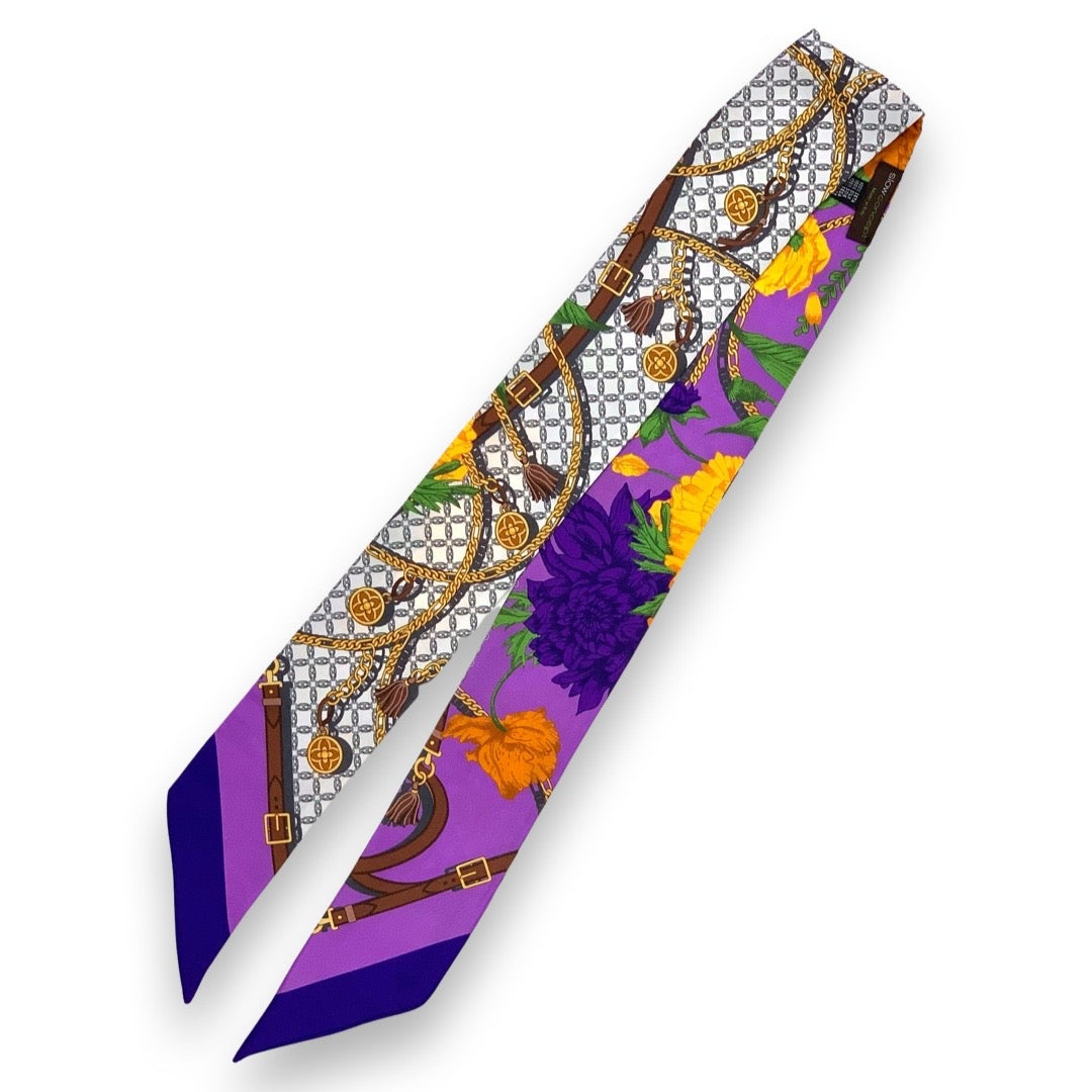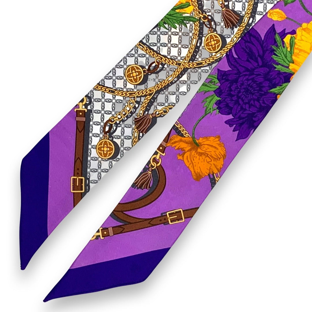 Pure Silk Bandeau with Pop Flower design and buckles colour Lilac Cod 785