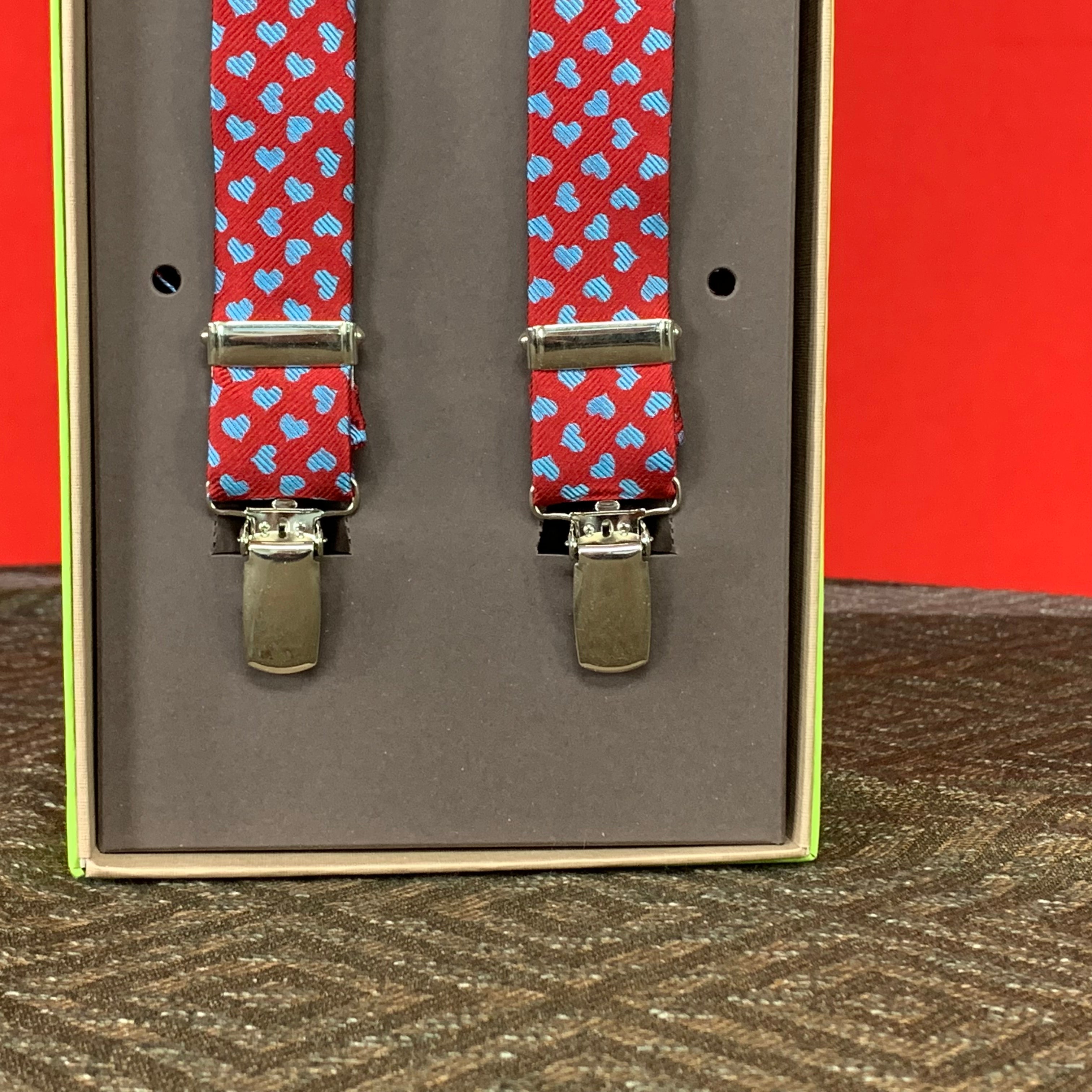 Red Silk Straight Braces with Light Blue Heart Cod 119
