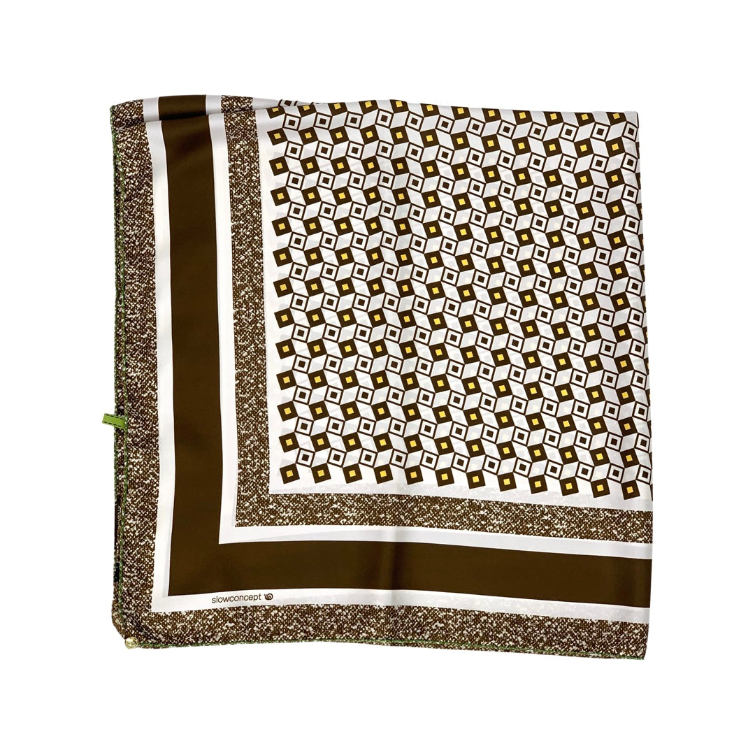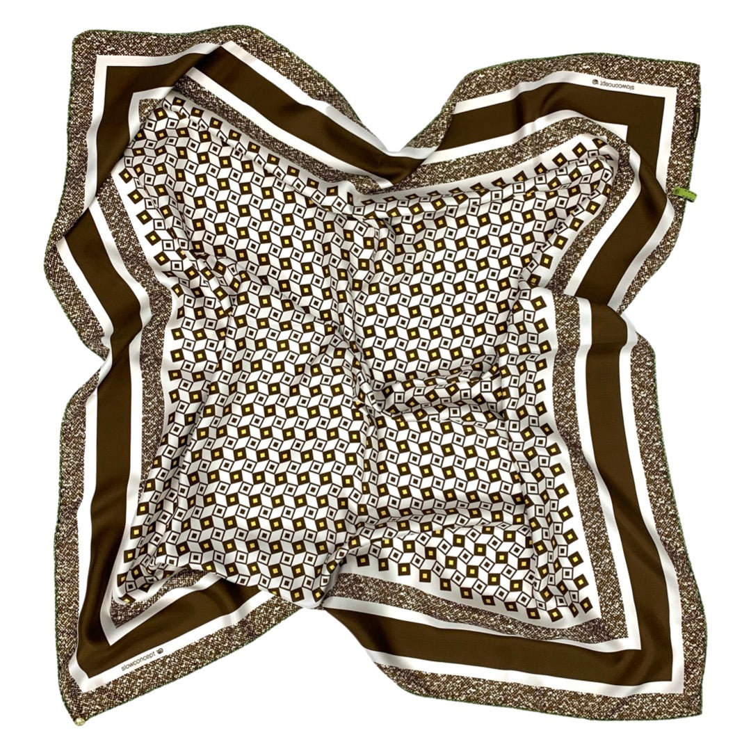 Scarf cm 90x90 Pure Silk geometric design brown Cod 539