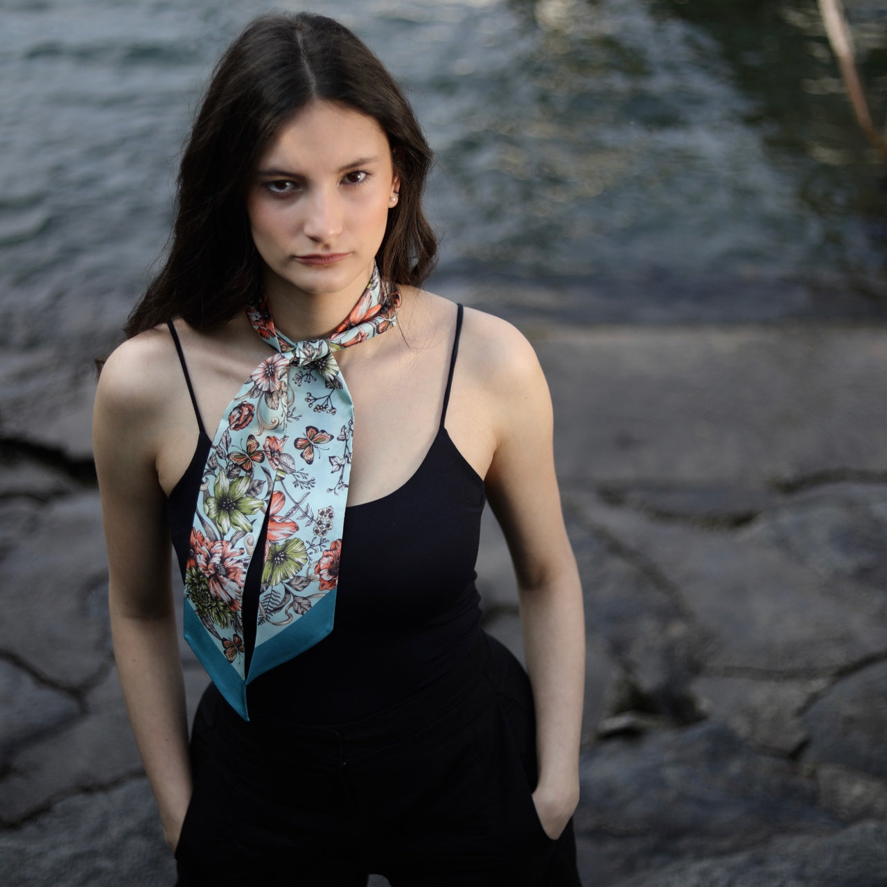 Bandeau estampado en pura seda Made in Italy, 7x112 cm