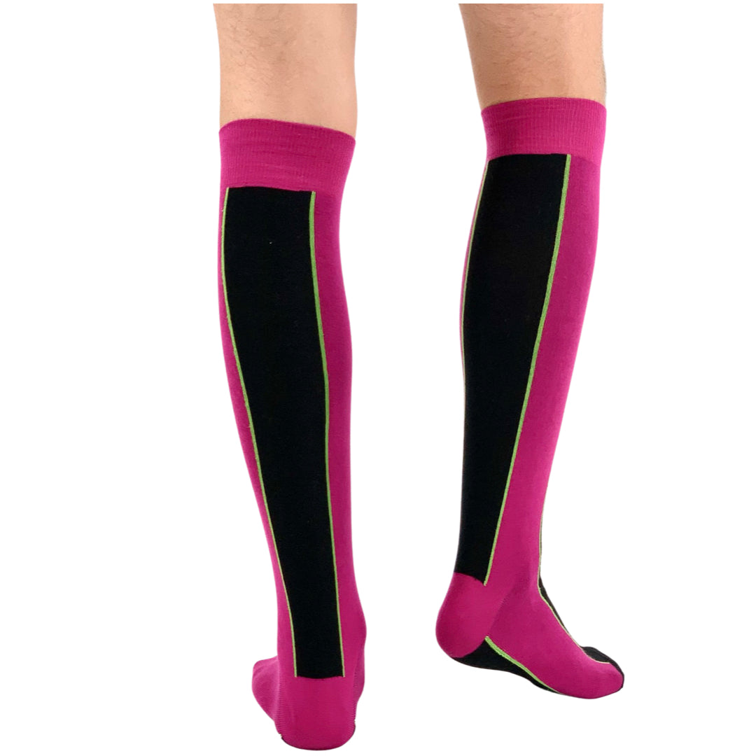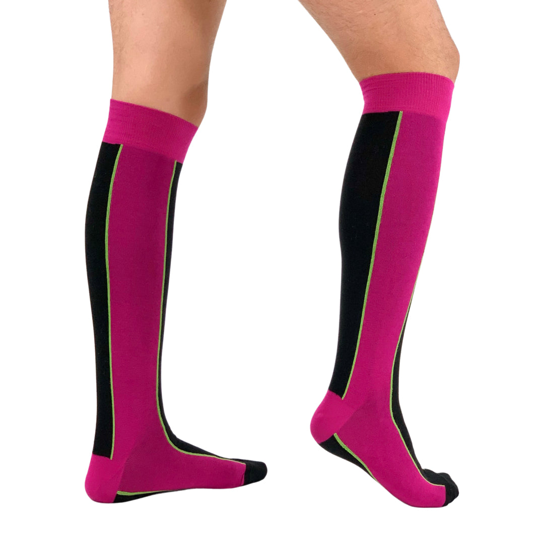 Calcetines de hombre Algodón panel bicolor Negro y Fuxia Cod 385