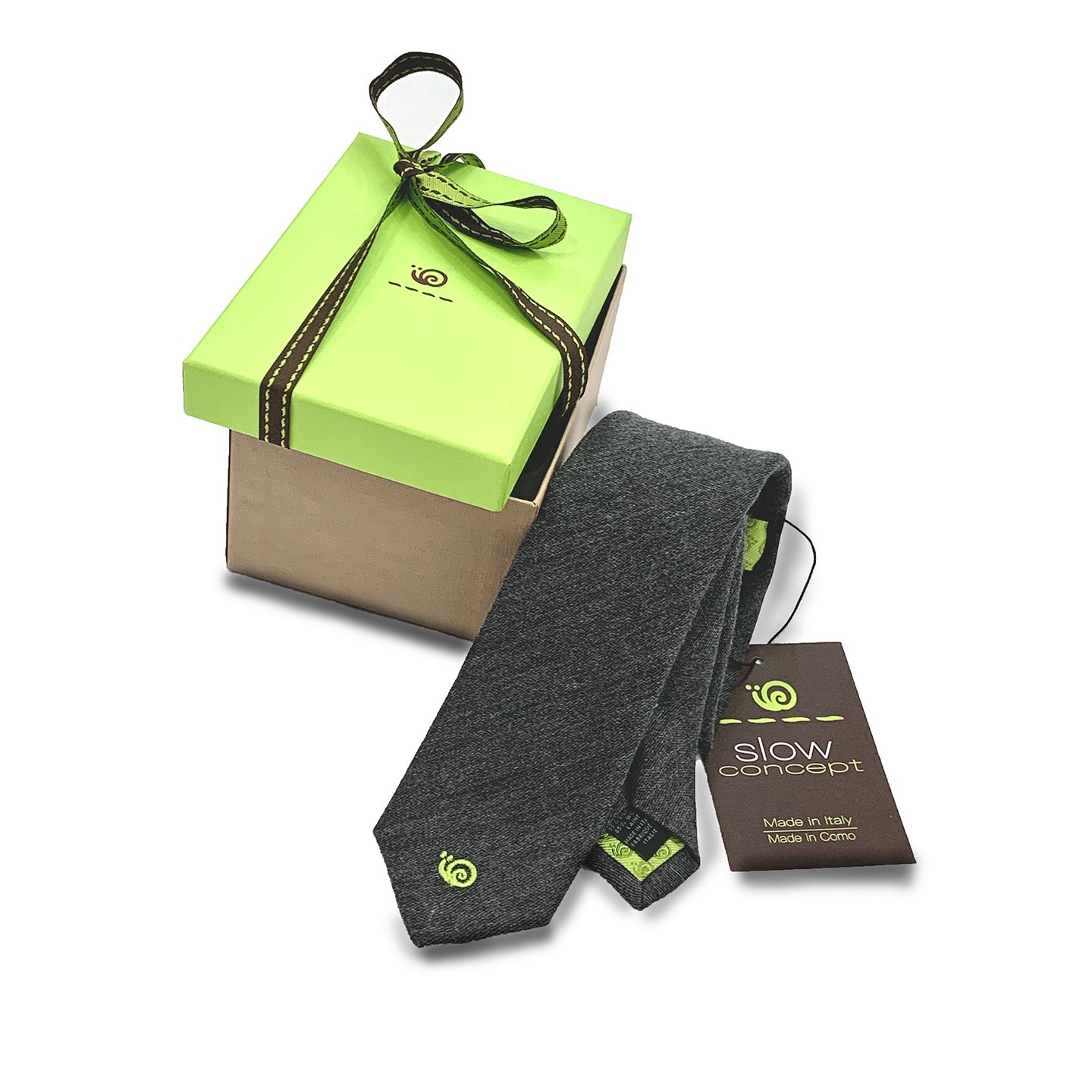 CORBATA DE LANA DE SEDA MELANGE DE 6 CM DE ANCHO, CON CAJA DE REGALO Y CINTA