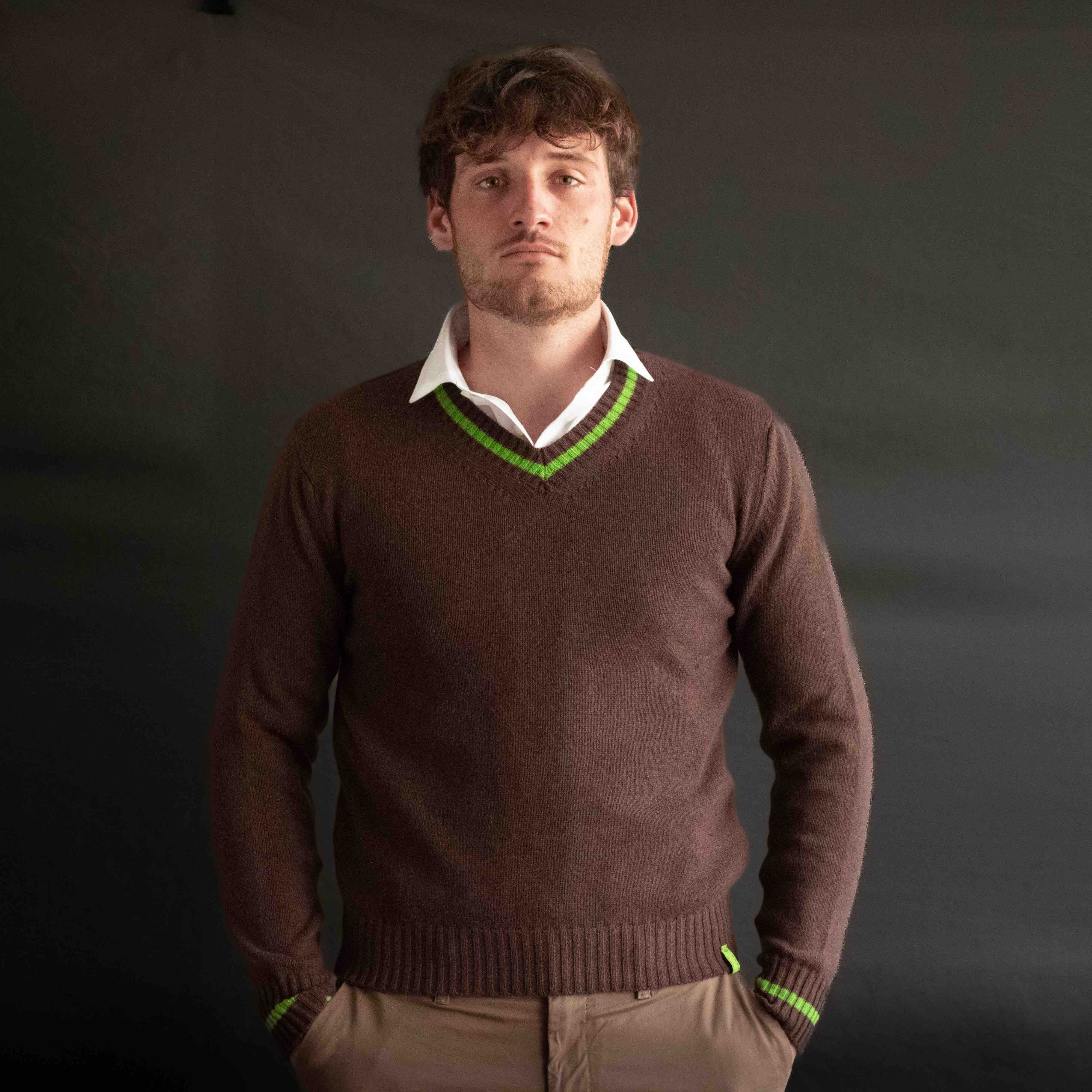 Jersey Adriano de cachemira pura Color marrón Cod. 821-823